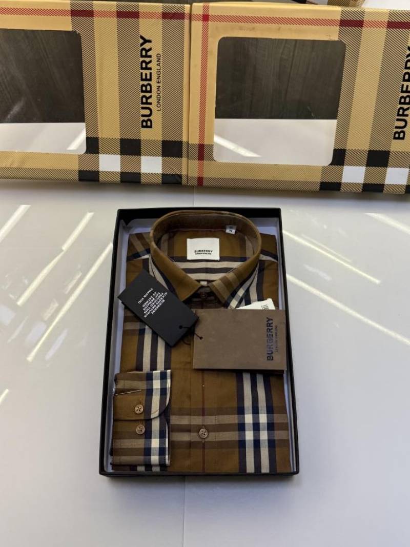Burberr y Checks Premium Store article Shirt with Original Box (Brown)