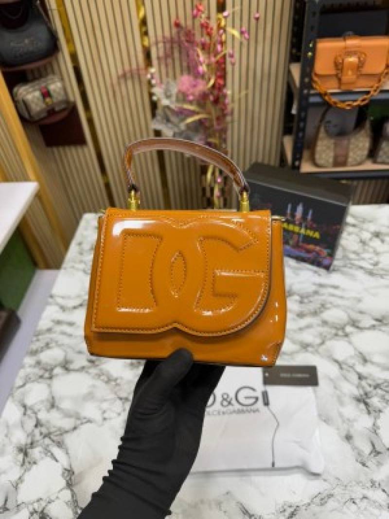 Dolce_&_Gabbana_lacquered_bag_mini_DG Logo_(Brown)