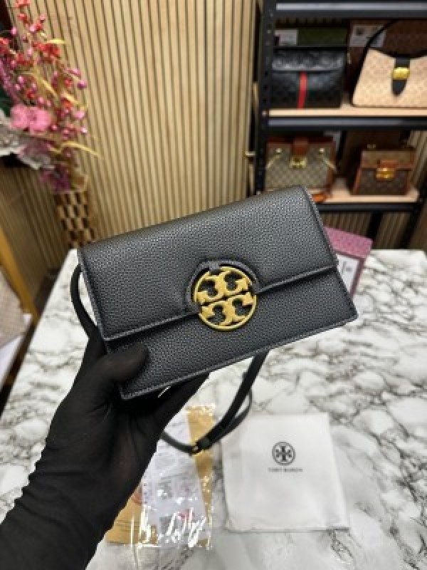 TORY BURC_H LEATHER MILLER FLAP SHOULDER BAG (BLACK)