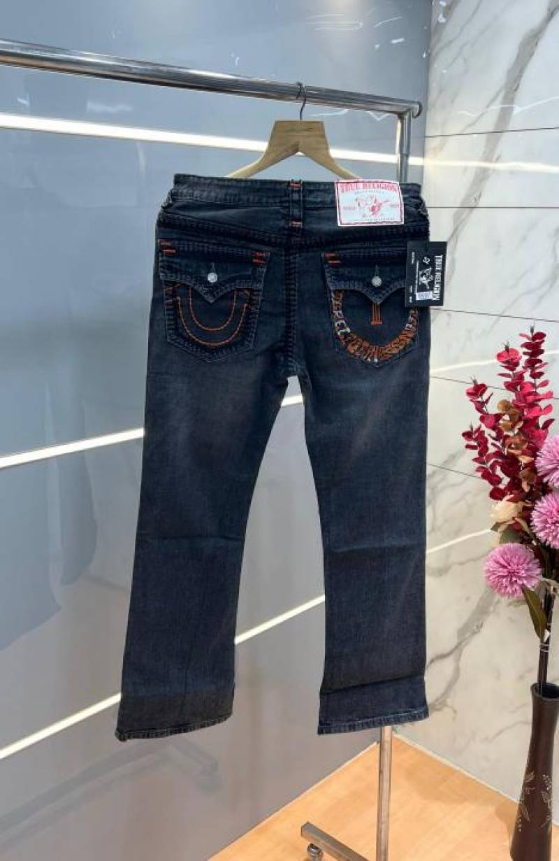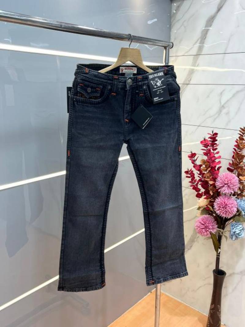 True Religio n Grey Shade Boot cut Premium Imported Stretchable lycra fabric Denim with back flap pocket Design 3766