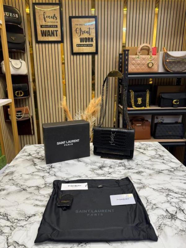 Yves Saint Laurent Ysl Sunset Shoulder Bag With Box Dust Bag (Silver)